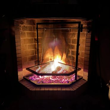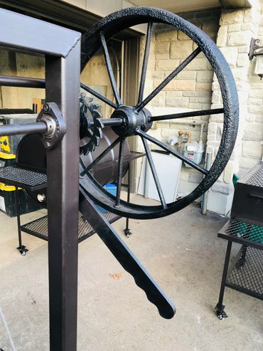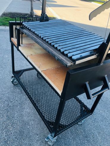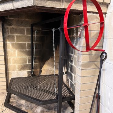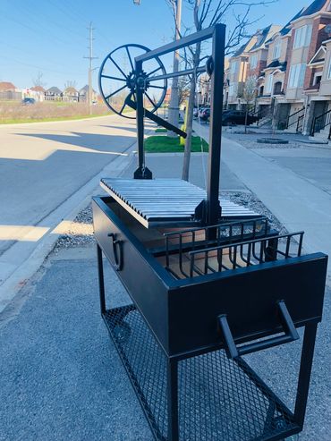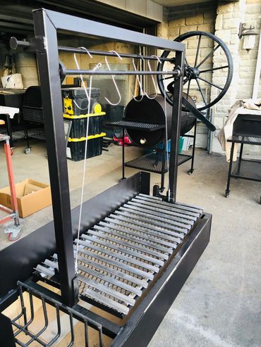 Argentinian Parrella Grills custom made to any desired size, with firebricks, fire box, custom fly wheel, contact us for more info and pricing